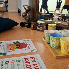 - Partage et convivialité : parce qu’on croit que rire ensemble fait autant de bien qu’un bon étirement, on te prépare une petite pause gourmande pour clôturer la pratique